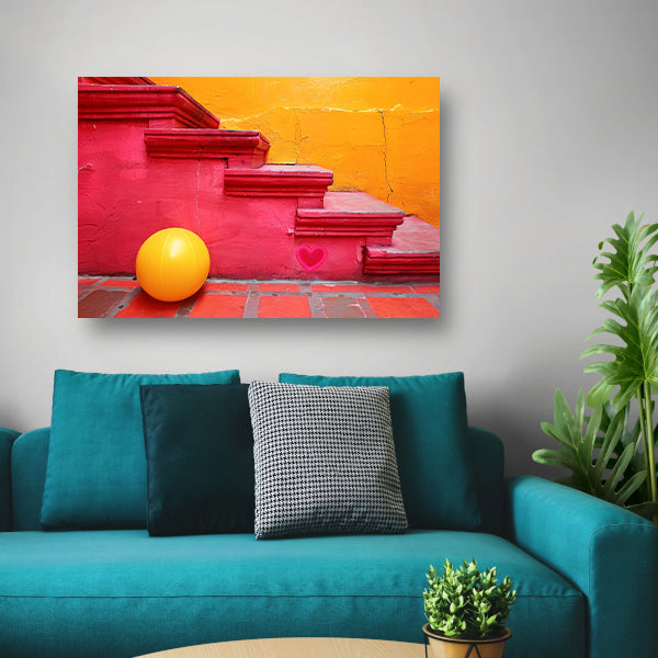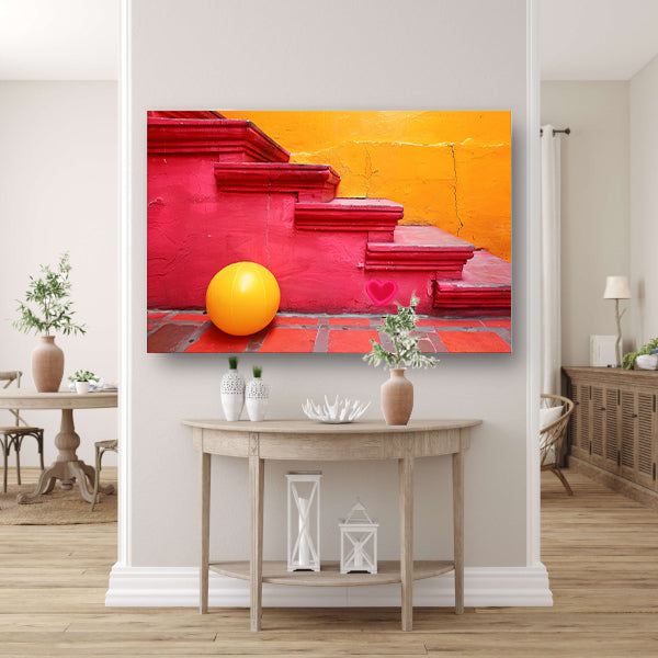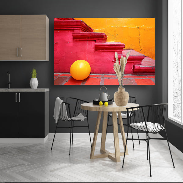 Minimalistische trap met gele bal acrylglas