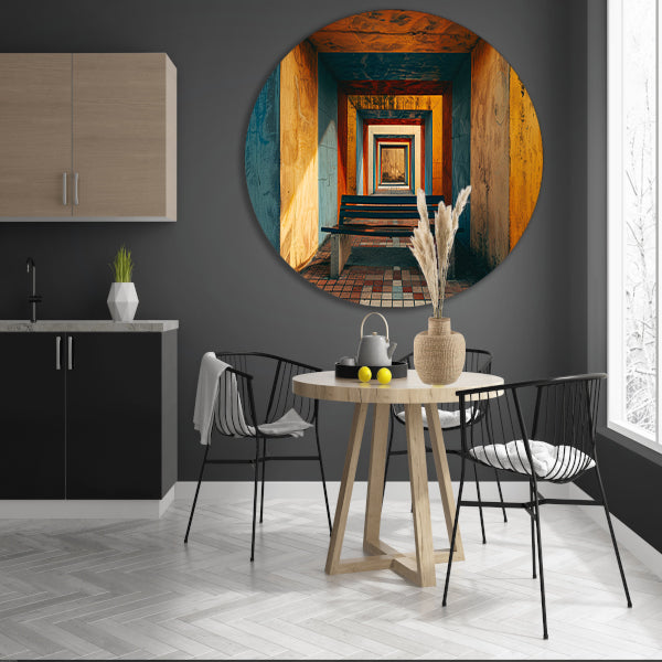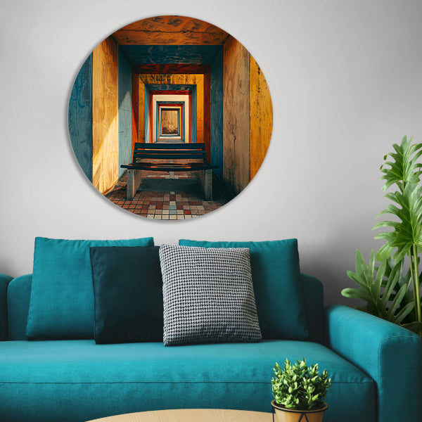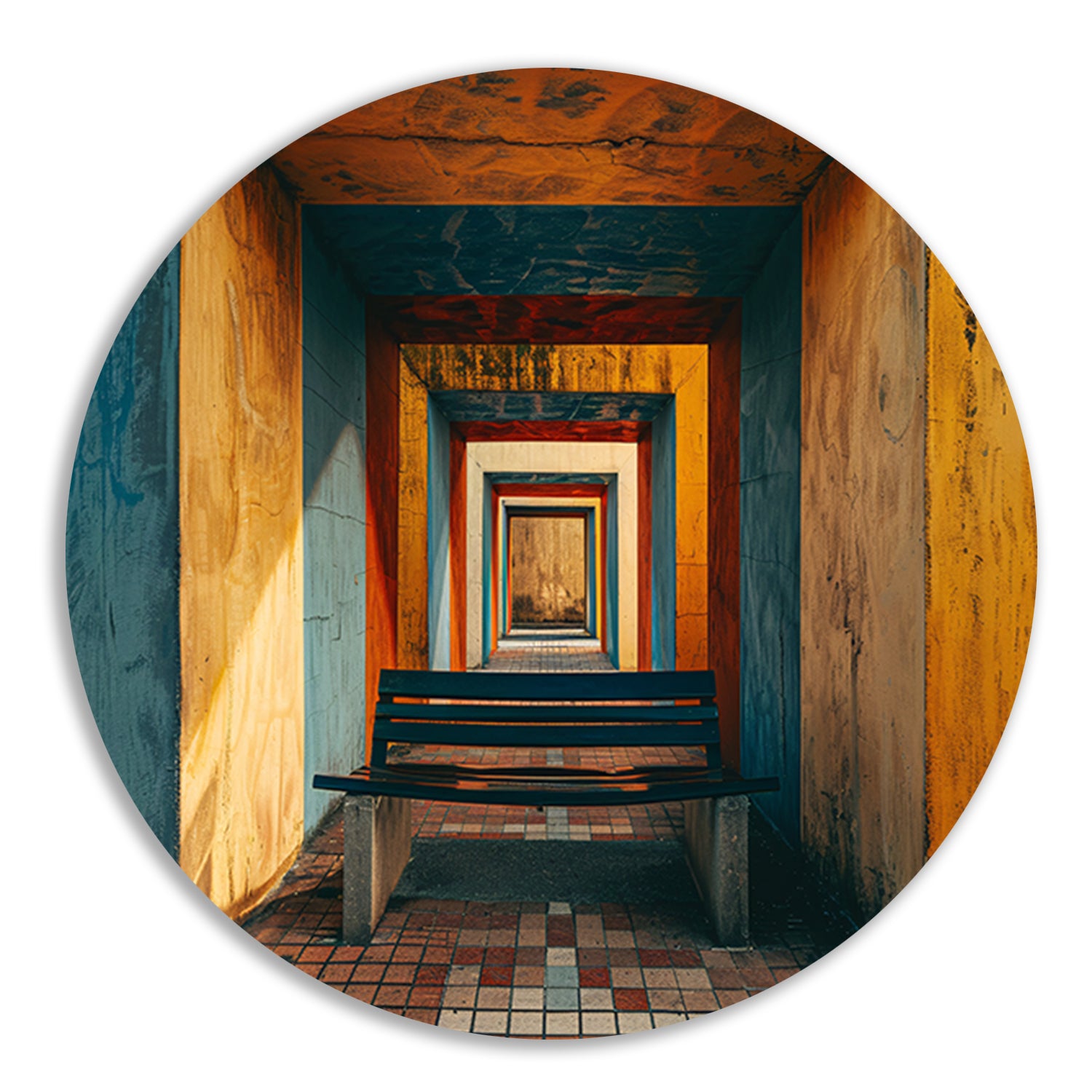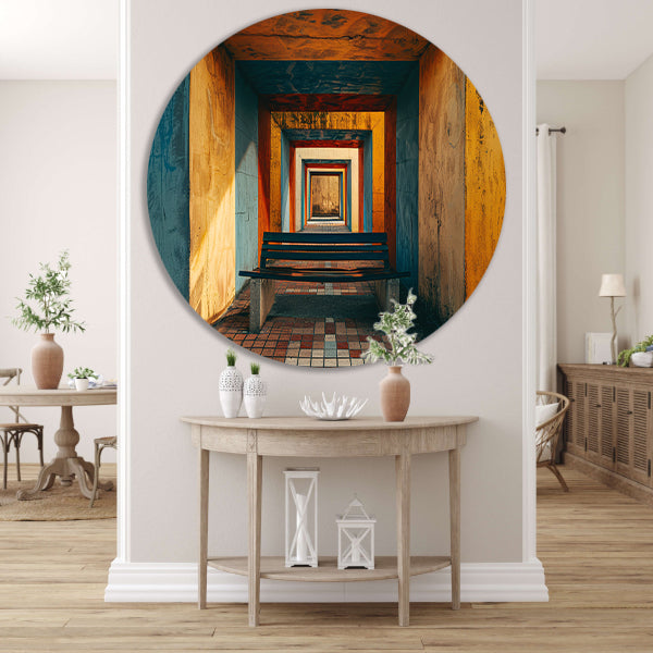 Minimalistische Tunnel met Bankje aluminium muurcirkel