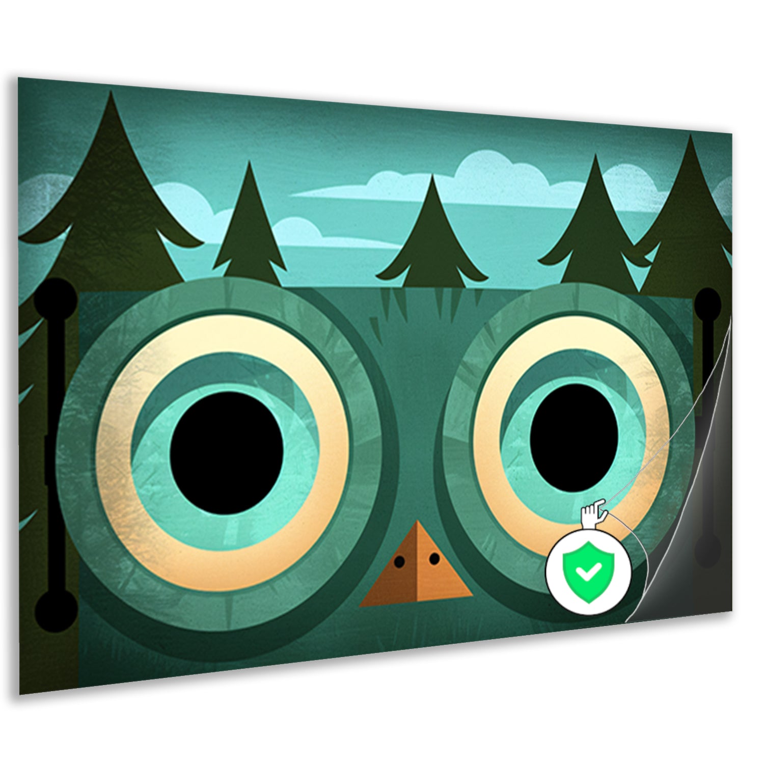 Minimalistische uil met bosachtergrond poster