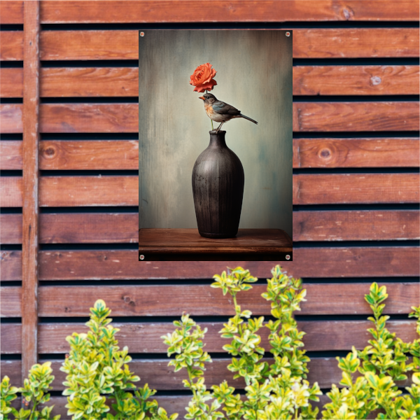Onze tuinposters zijn UV- en waterbestendig, waardoor ze bestand zijn tegen zon en regen en hun kleuren langdurig mooi blijven. Alle tuinposters van De Muurdecoratie zijn voorzien van ringen in de hoeken, zodat je ze eenvoudig kunt ophangen. Let op: onze tuinposters worden niet met ophangsysteem geleverd.