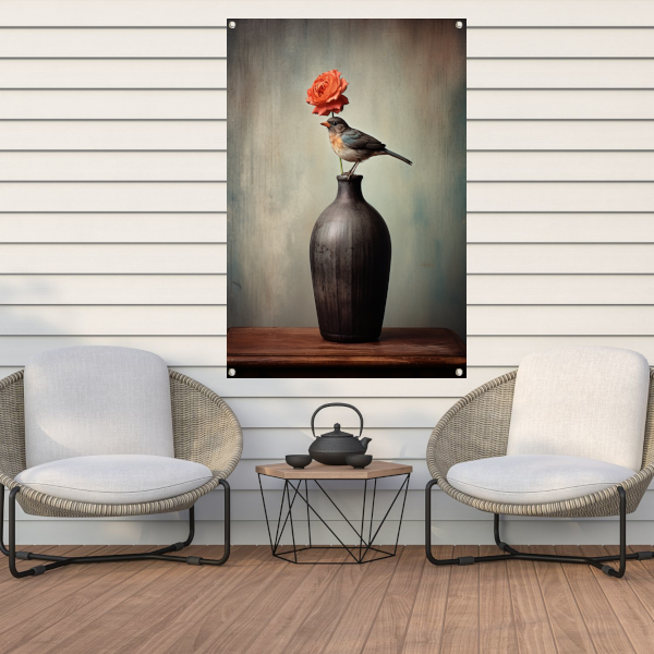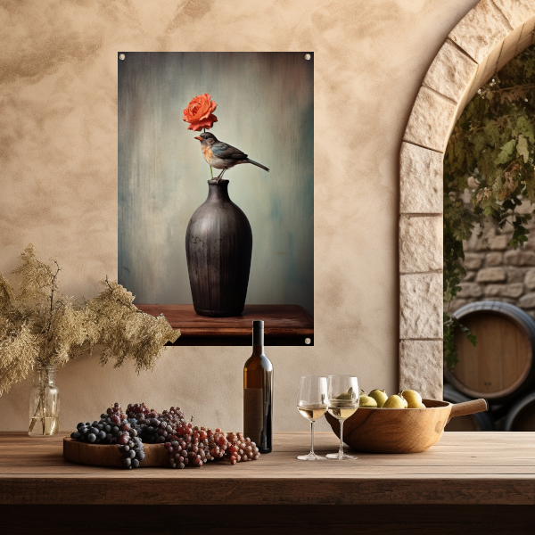 Deze prachtige tuinposter is een echte eyecatcher voor jouw tuin of balkon. De minimalistische vaas met een close-up van een bloem zorgt voor een rustige en stijlvolle sfeer. De tuinposter is verkrijgbaar in verschillende formaten, zodat je altijd een passend formaat kunt vinden voor jouw buitenruimte.