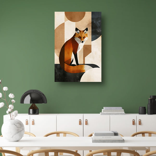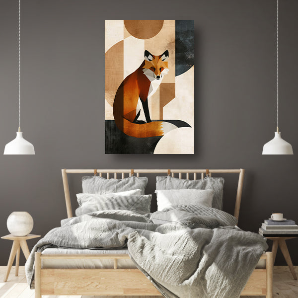 Minimalistische Vos in Art Deco Stijl canvas met baklijst