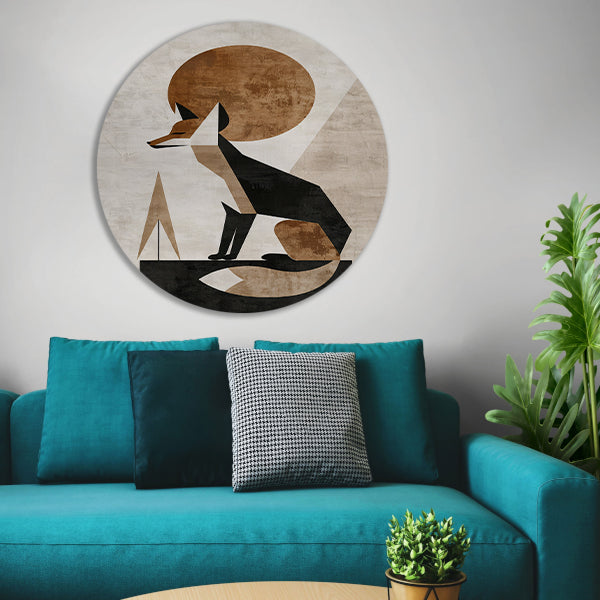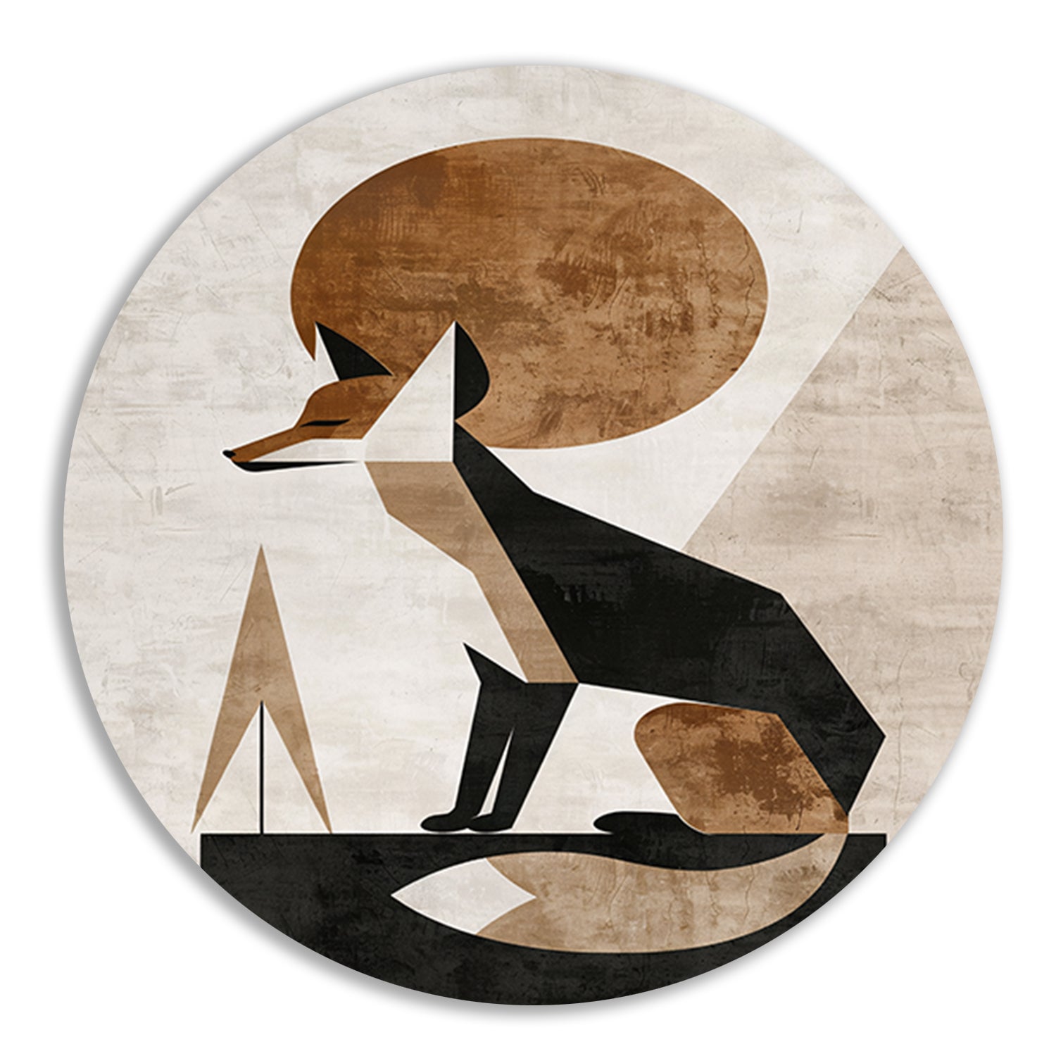Minimalistische Vos in Geometrische Harmonie aluminium muurcirkel