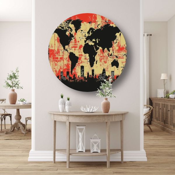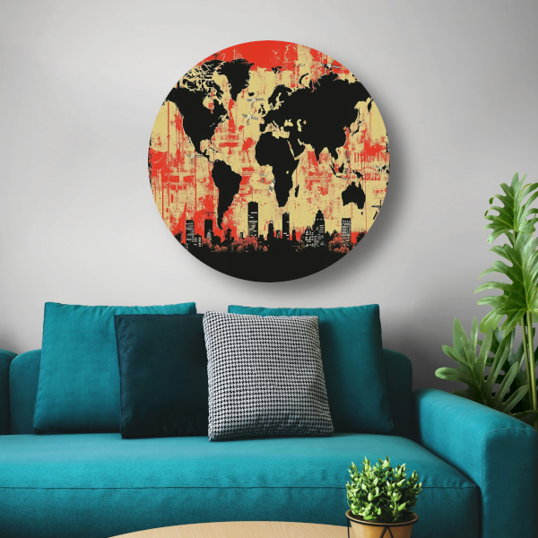 De wereldkaart is subtiel en stijlvol vormgegeven, waardoor het een tijdloze toevoeging is aan elke kamer in uw huis. De strakke lijnen en eenvoudige vormen zorgen ervoor dat deze muurcirkel naadloos past bij zowel moderne als klassieke interieurs.