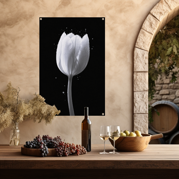Onze tuinposters zijn UV- en waterbestendig, waardoor ze bestand zijn tegen zon en regen en hun kleuren langdurig mooi blijven. Alle tuinposters van De Muurdecoratie zijn voorzien van ringen in de hoeken, zodat je ze eenvoudig kunt ophangen. Let op: onze tuinposters worden niet met ophangsysteem geleverd.