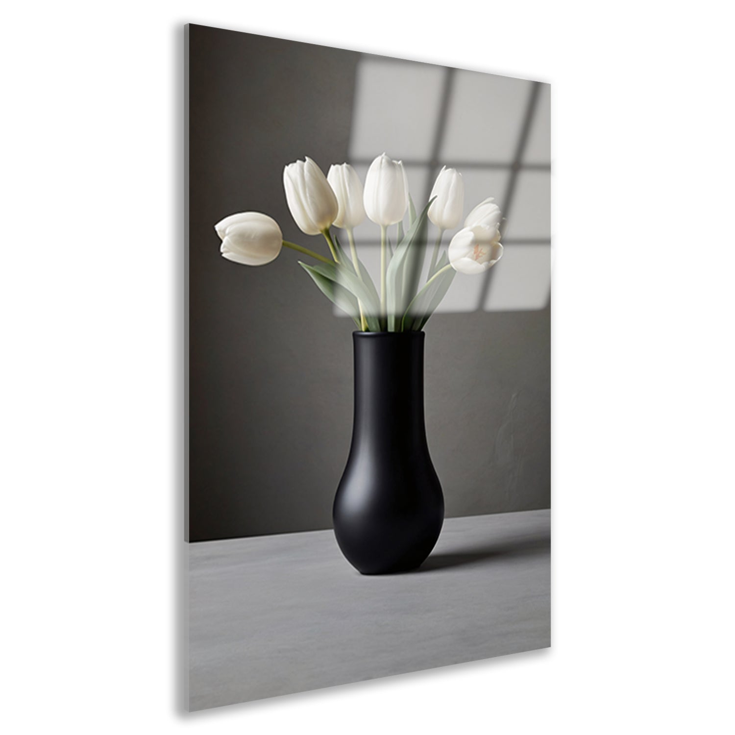 Minimalistische Witte Tulpen in Elegante Zwarte Vaas Acrylglas