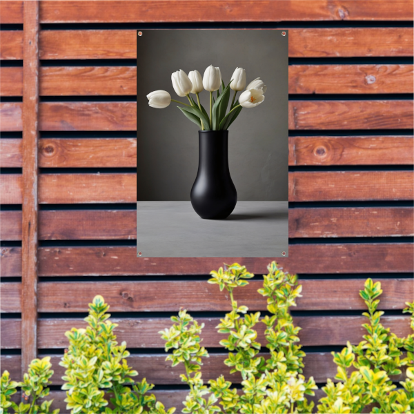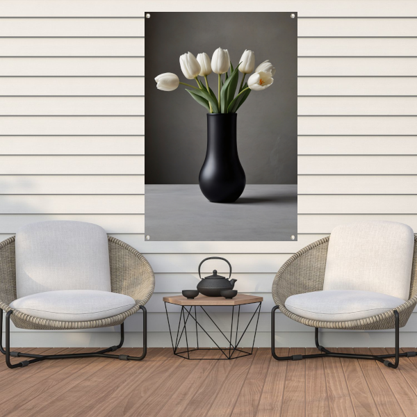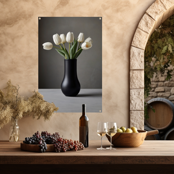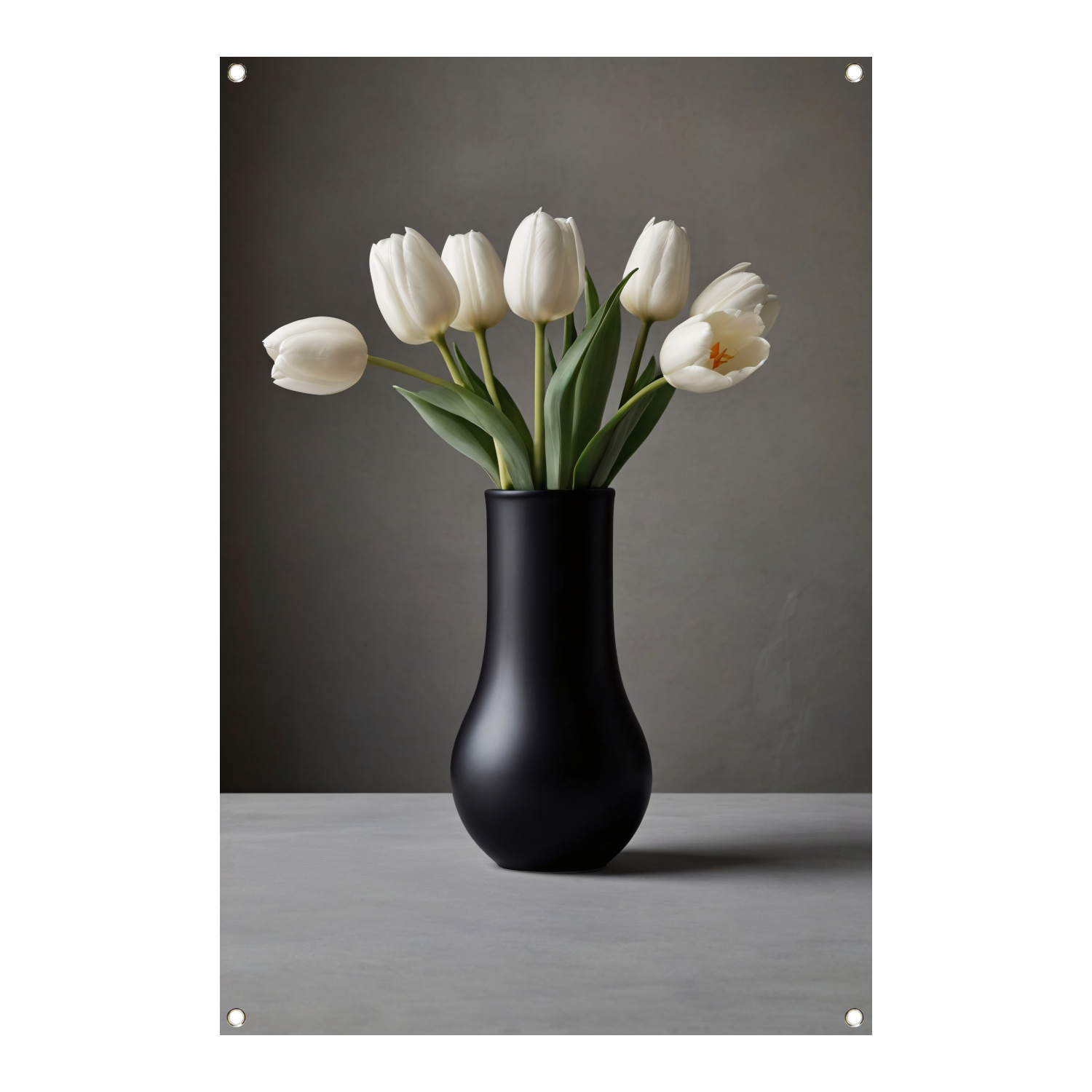Minimalistische Witte Tulpen in Elegante Zwarte Vaas tuinposter