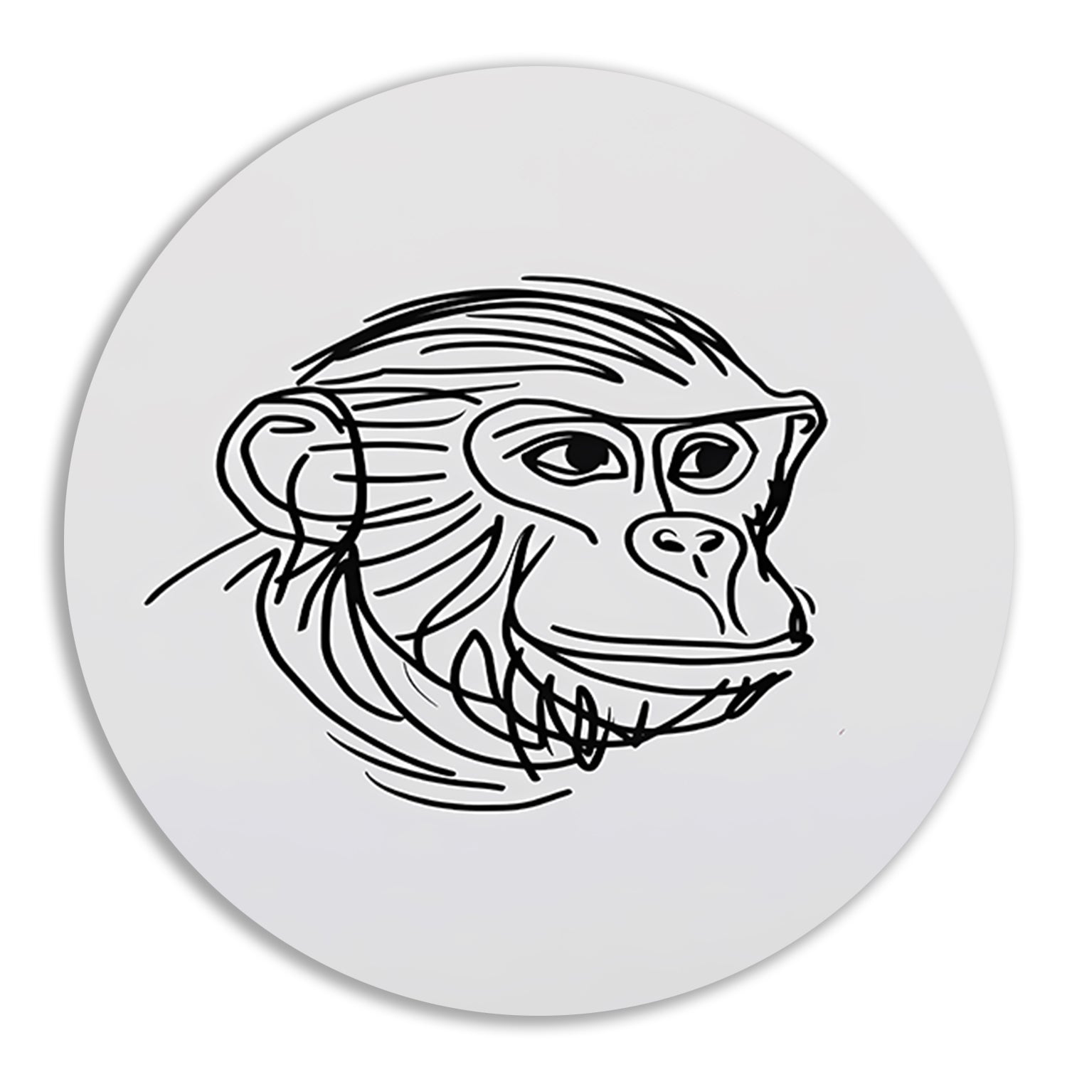 Minimalistische zwart-witte aap tekening aluminium muurcirkel