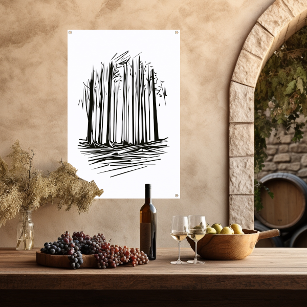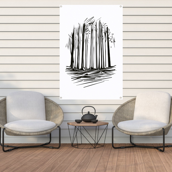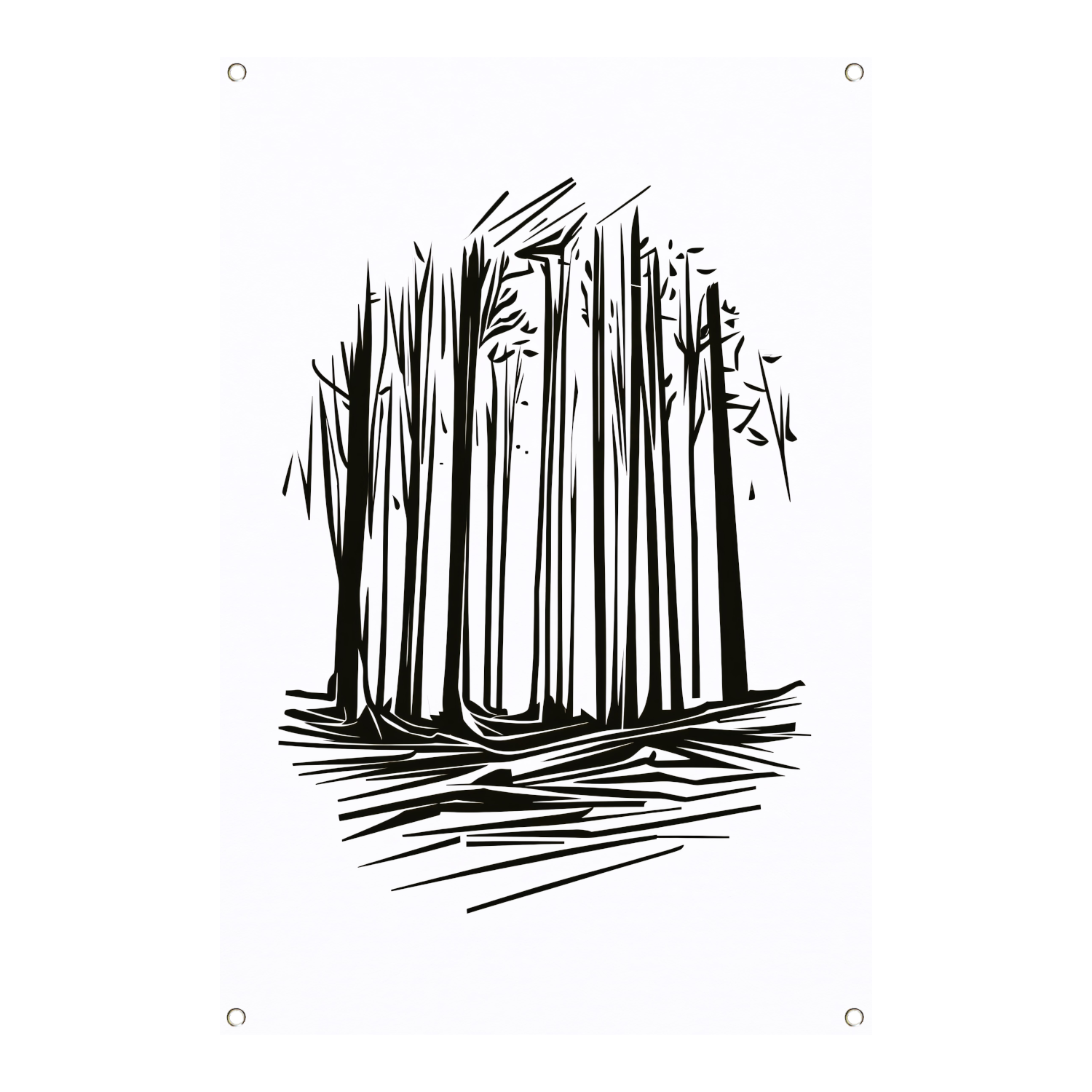 Minimalistische Zwart-witte Bomen Lijntekening tuinposter