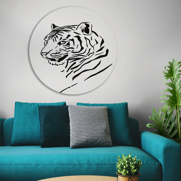 Minimalistische Zwarte Tijger Lijnenkunst aluminium muurcirkel