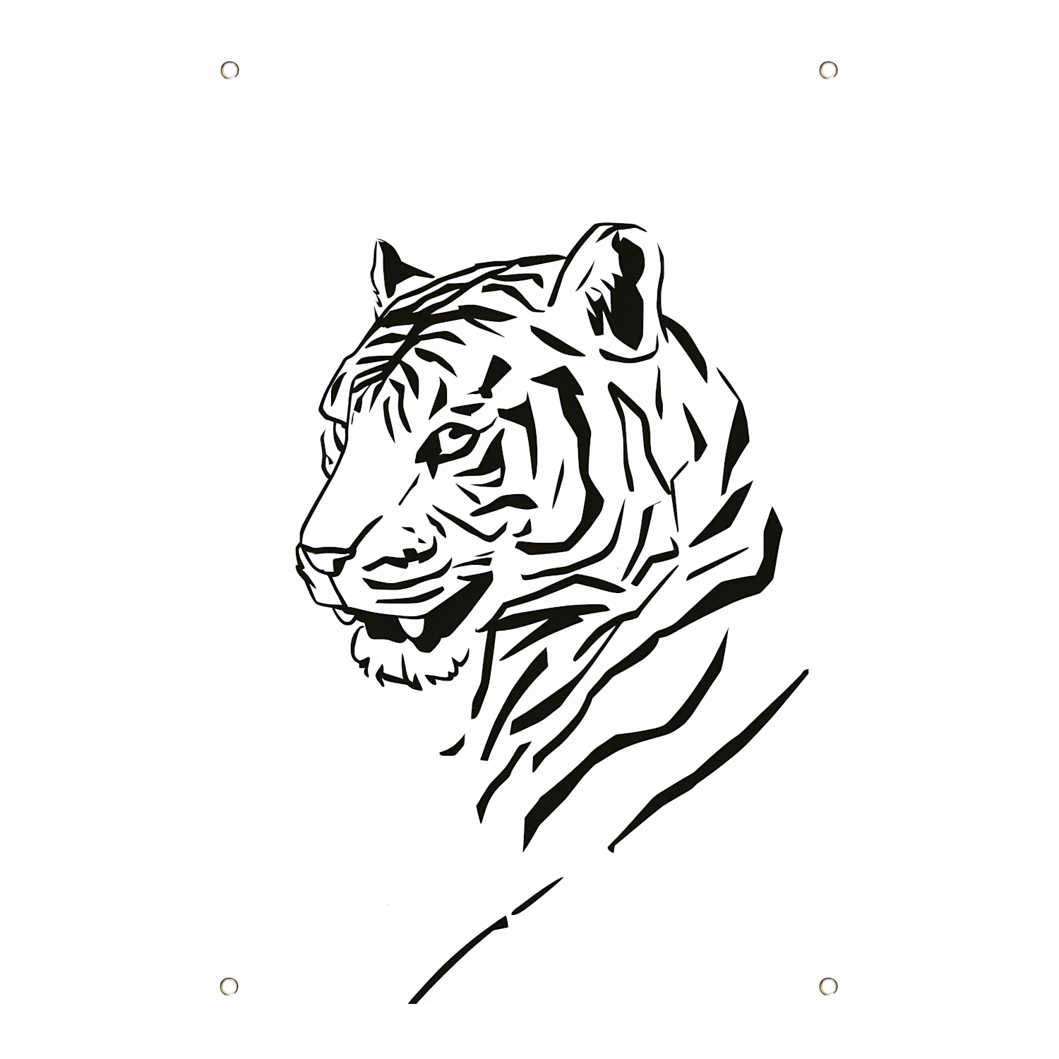 Minimalistische Zwarte Tijger Lijnenkunst tuinposter