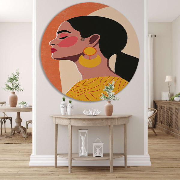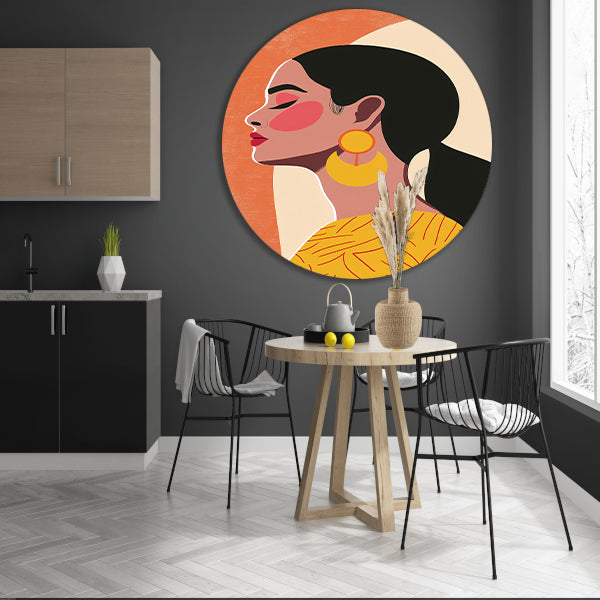Deze muurcirkel is verkrijgbaar in allerlei formaten, waardoor je de perfecte maat kunt kiezen voor jouw ruimte. Of je nu op zoek bent naar een opvallend middelpunt of een subtiele toevoeging, dit moderne vrouwelijke portret zal zeker een prachtige aanvulling zijn op jouw interieur. Voeg dit unieke kunstwerk toe aan je collectie en geniet van de schoonheid en stijl die het met zich meebrengt.