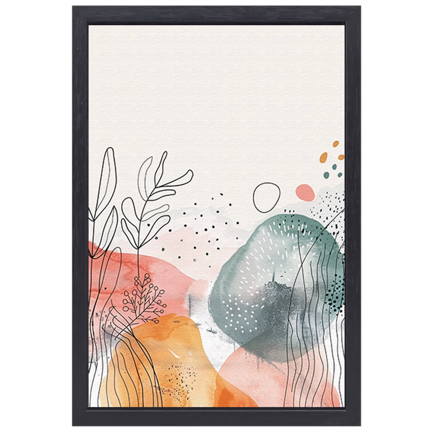 Moderne abstracte kunst met aquarel en lijntekeningen canvas met baklijst