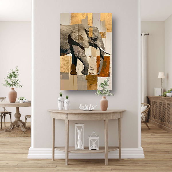 Moderne abstracte olifant in sepia tonen canvas met baklijst