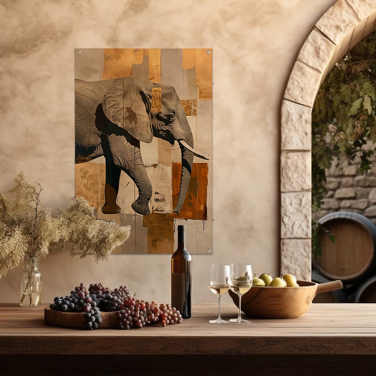 Moderne abstracte olifant in sepia tonen tuinposter