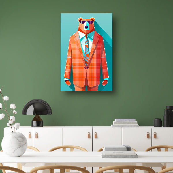 Moderne Beer in Oranje Pak Kunstwerk canvas