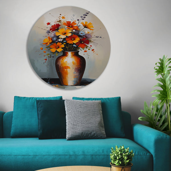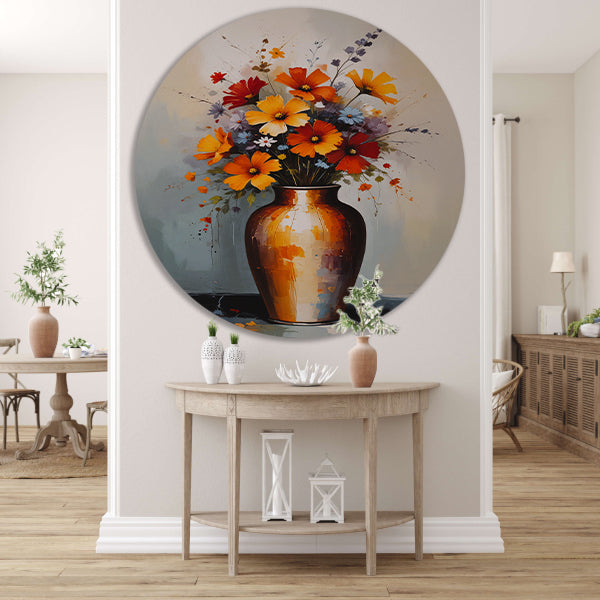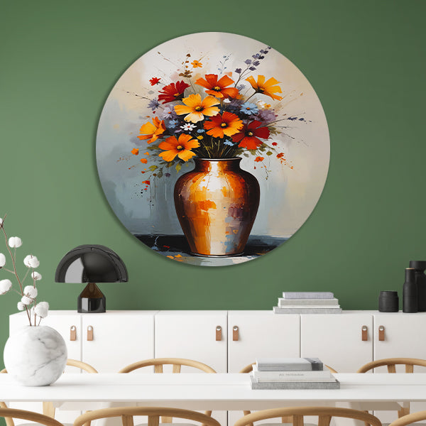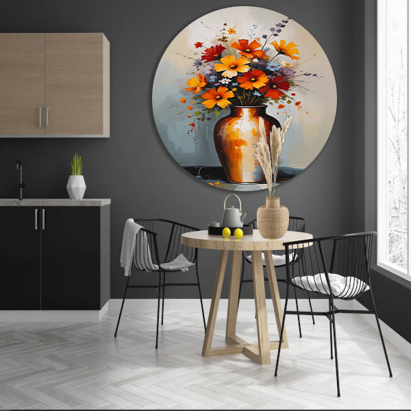 Moderne Impressionistische Bloemen in Vaas forex muurcirkel