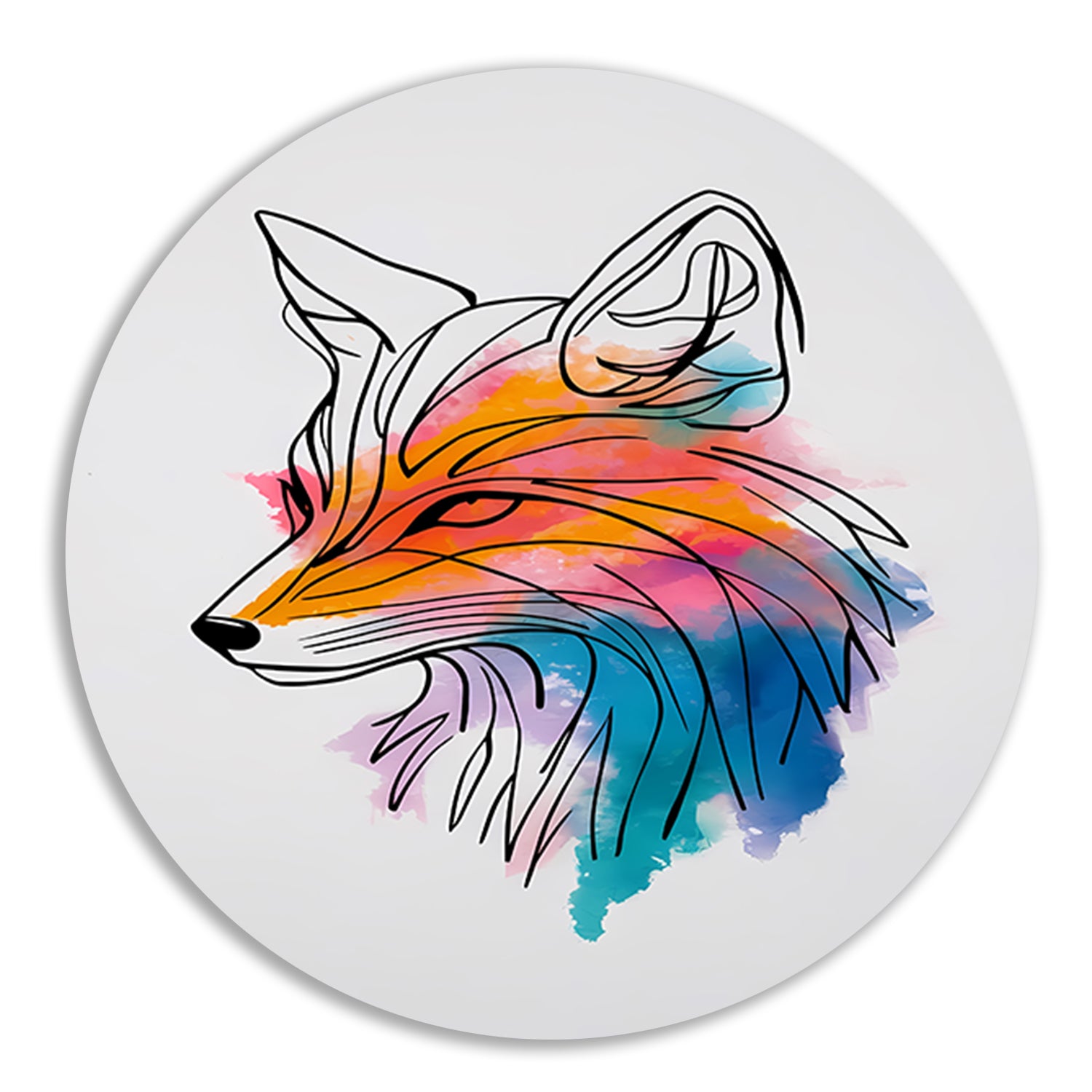 Moderne Lijnkunst Illustratie van een Vos aluminium muurcirkel