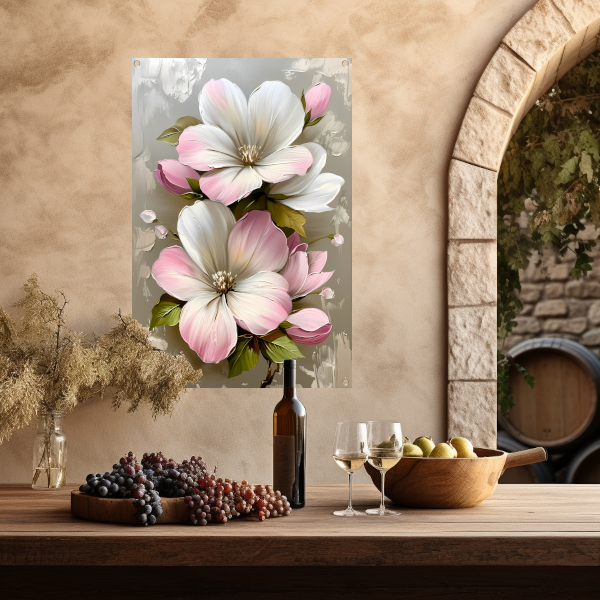 Moderne minimalistische bloemen in zachte pastelkleuren tuinposter
