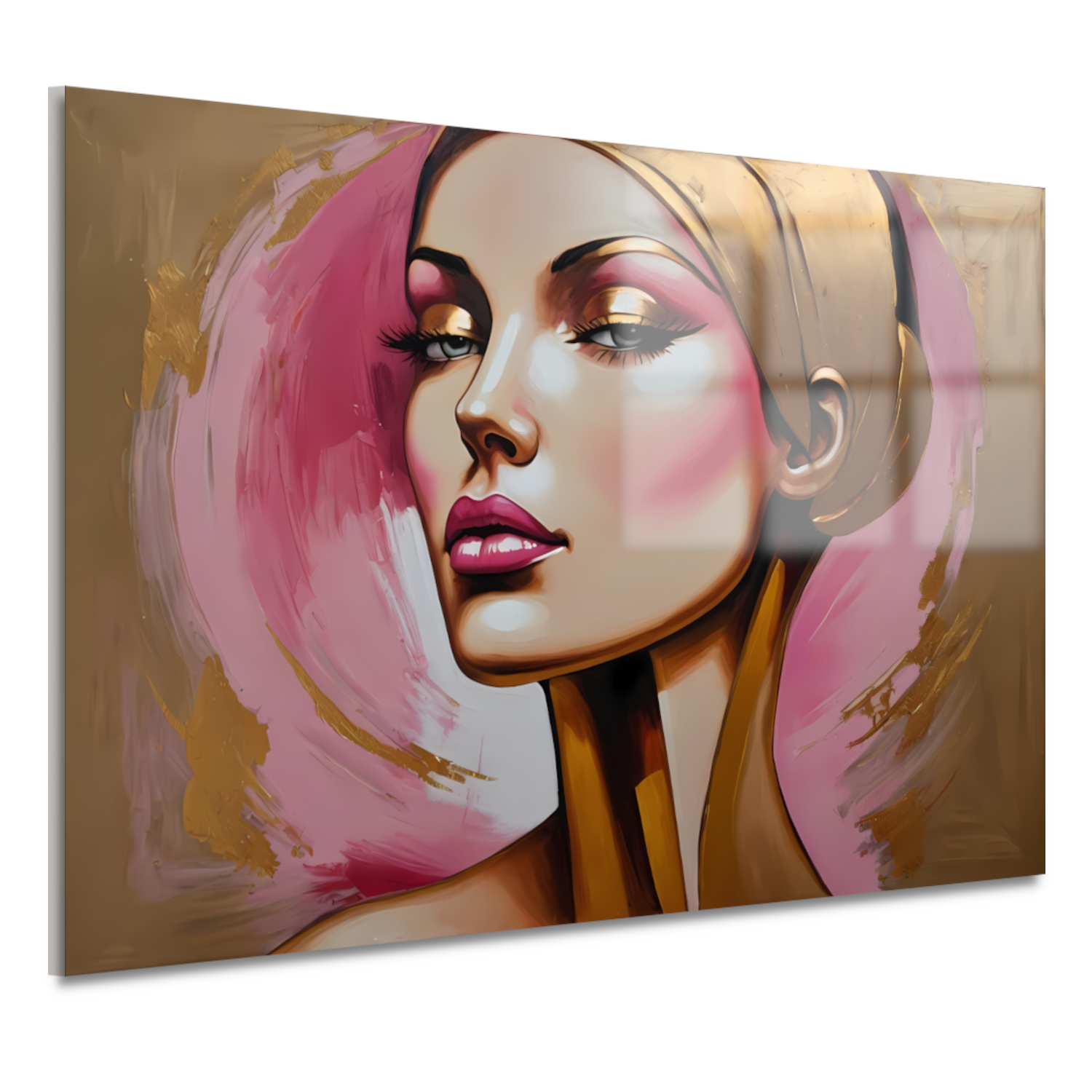 Breng een vleugje moderniteit en stijl in huis met dit prachtige portret van een moderne vrouw met een gouden oorbel, gedrukt op hoogwaardig acrylglas. Bestel nu en geef je interieur een chic en eigentijds accent!