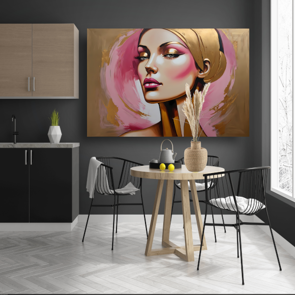 Dit kunstwerk wordt geleverd met een gratis ophangplaat, zodat je het gemakkelijk aan de muur kunt bevestigen en meteen kunt genieten van het elegante design. De meerdere maten waarin dit portret verkrijgbaar is, zorgen ervoor dat het perfect past in elke ruimte, of het nu de woonkamer, slaapkamer of kantoor is.