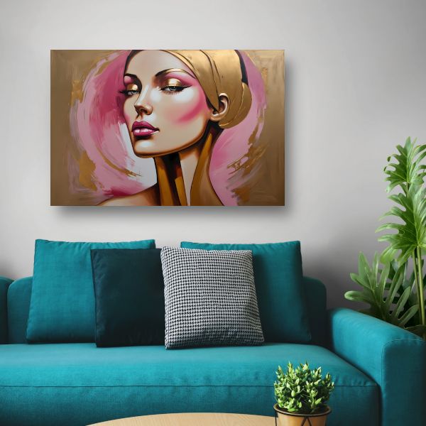 Moderne vrouw met gouden oorbel portret canvas met baklijst