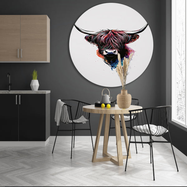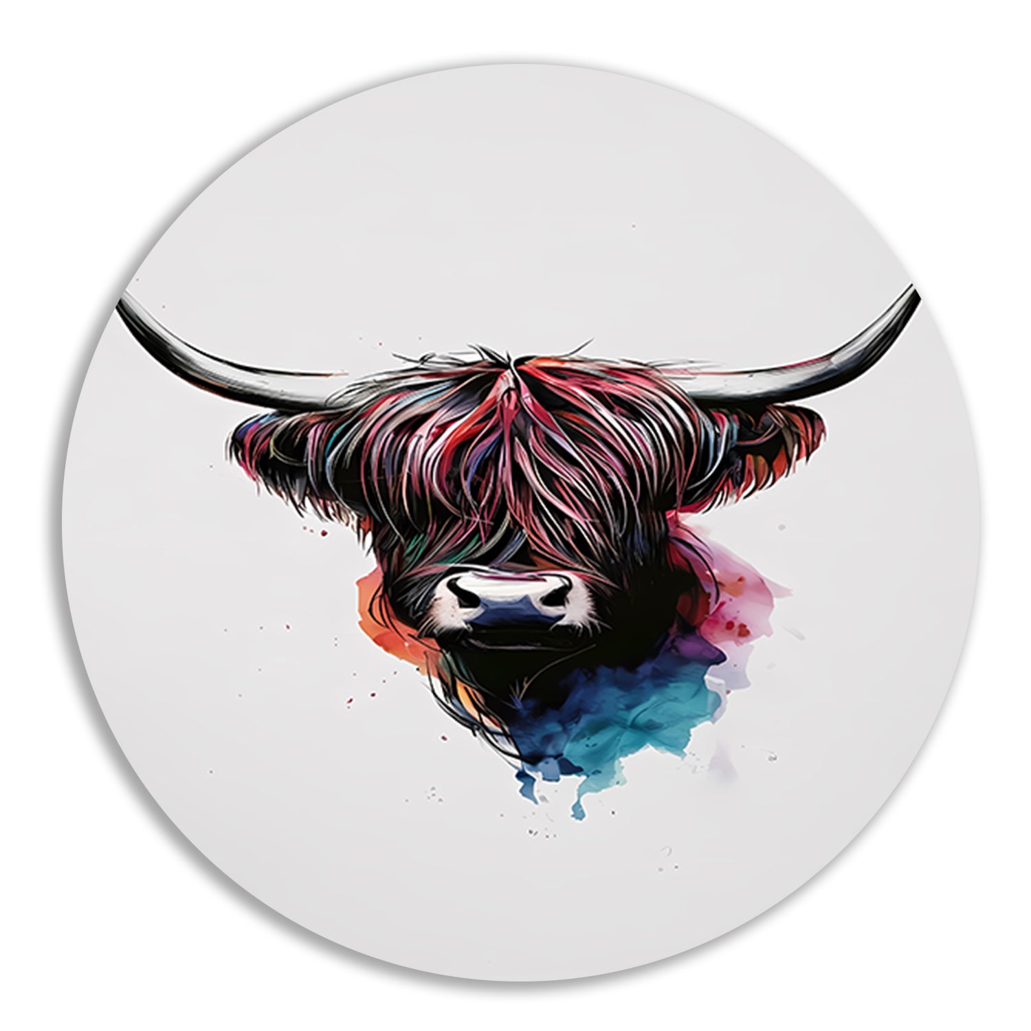Moderne waterverfstijl Schotse hooglander met kleur aluminium muurcirkel