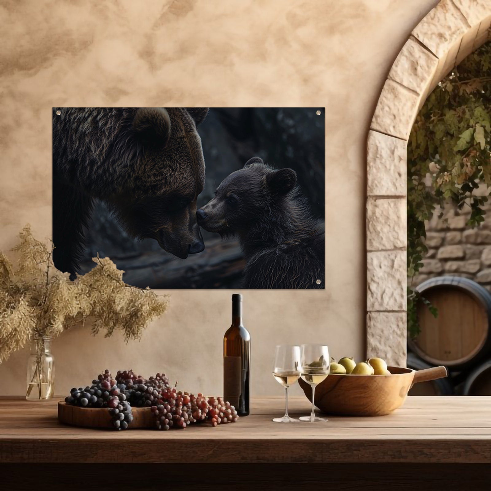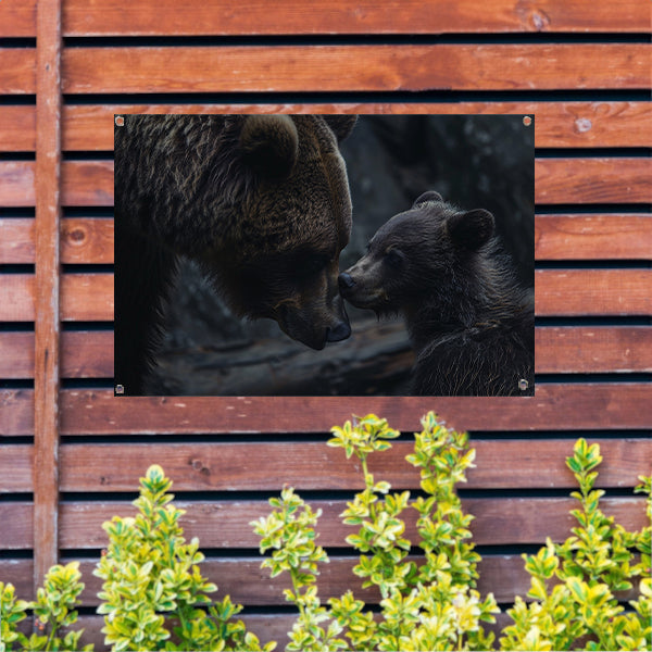 Moederbeer met haar welpje in het bos tuinposter