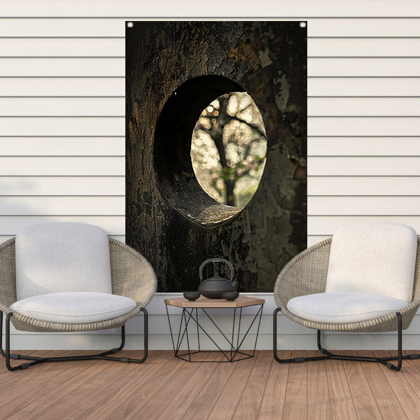 Monochrome Boom door een Gat tuinposter