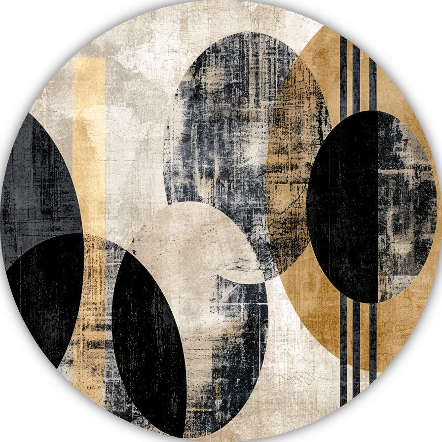 Monochrome Cirkels en Gouden Lijnen aluminium muurcirkel