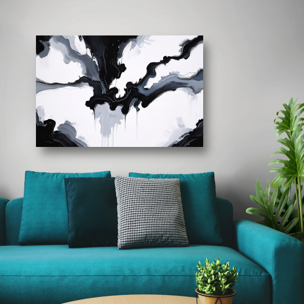 Monochrome Dynamiek in Zwart en Wit canvas met baklijst