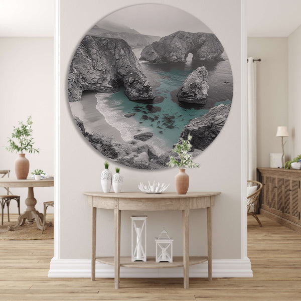 Breng de rustgevende sfeer van de kust in huis met deze prachtige muurcirkel en geniet dagelijks van het uitzicht op de rotsformaties langs de kustlijn. Perfect voor in de woonkamer, slaapkamer of kantoor!