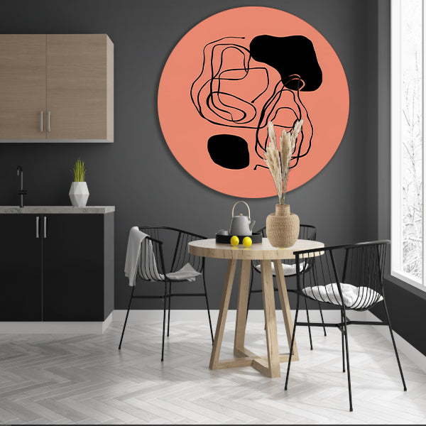 Monochrome Zwarte Lijnen op Roze Achtergrond aluminium muurcirkel