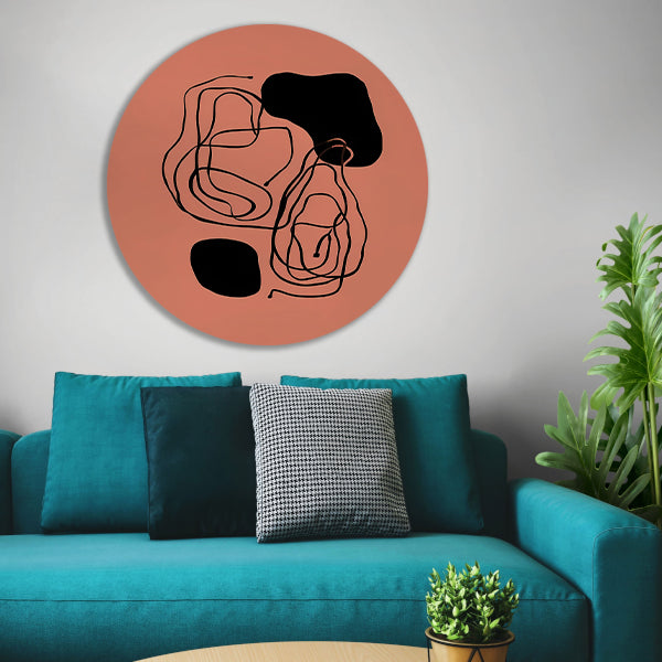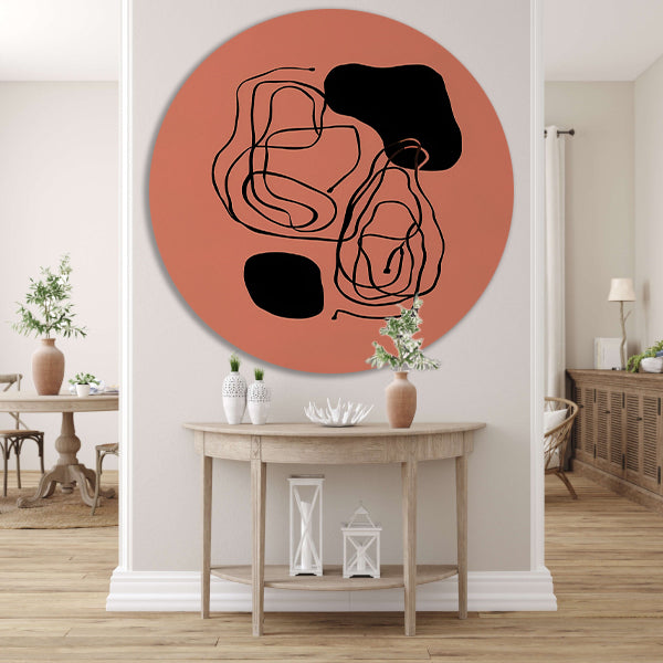 Monochrome Zwarte Lijnen op Roze Achtergrond forex muurcirkel