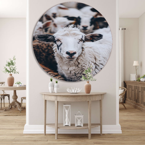Monochroom portret van een schaap in een kudde forex muurcirkel