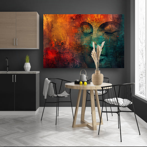 Mysterieus Boeddha portret met kleurrijke texturen acrylglas