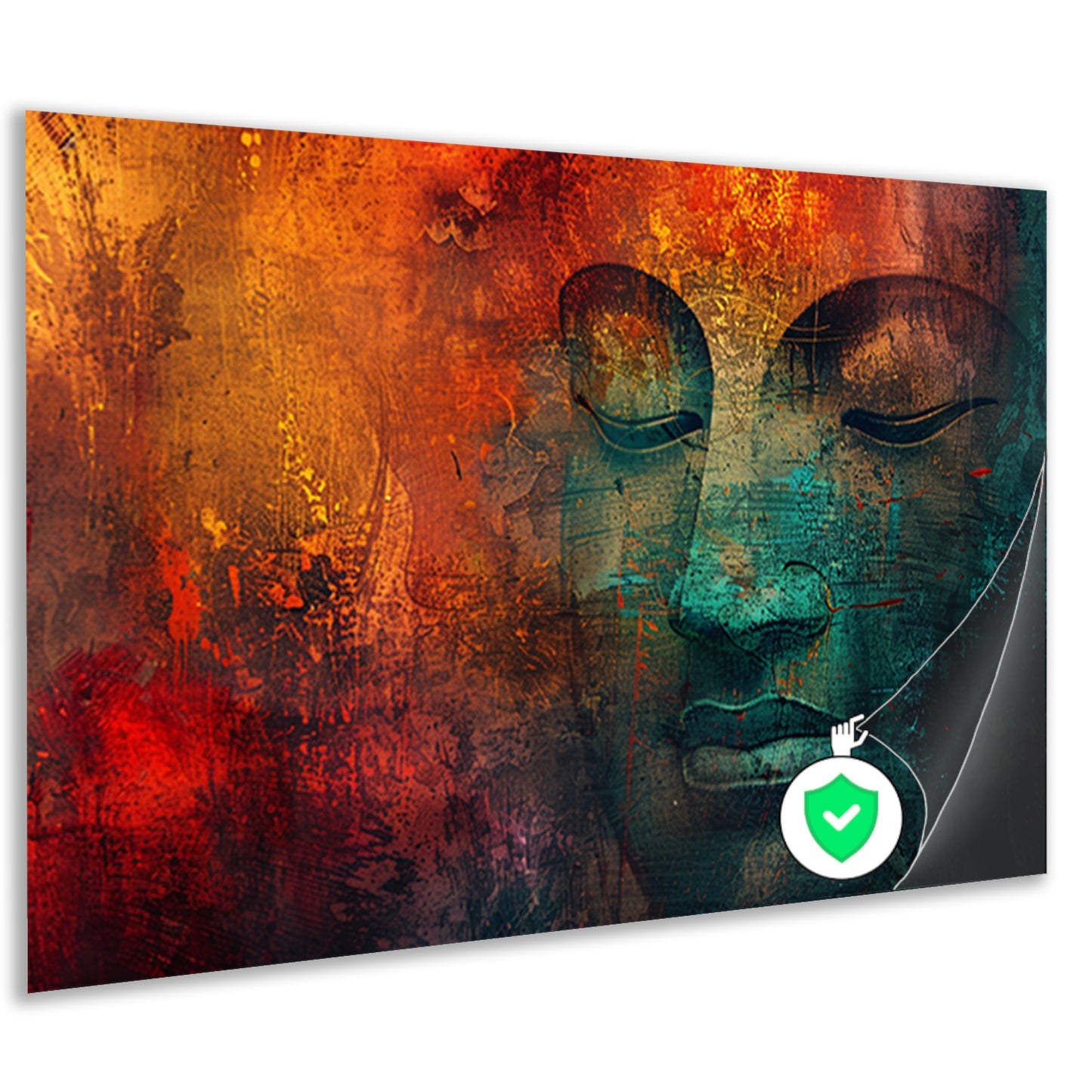 Mysterieus Boeddha portret met kleurrijke texturen poster