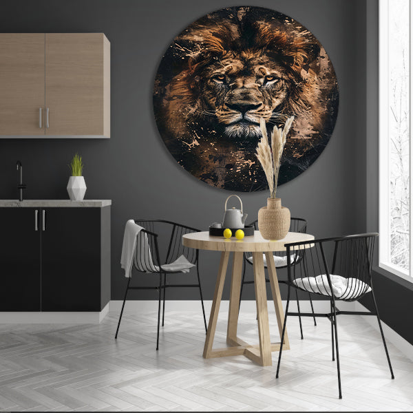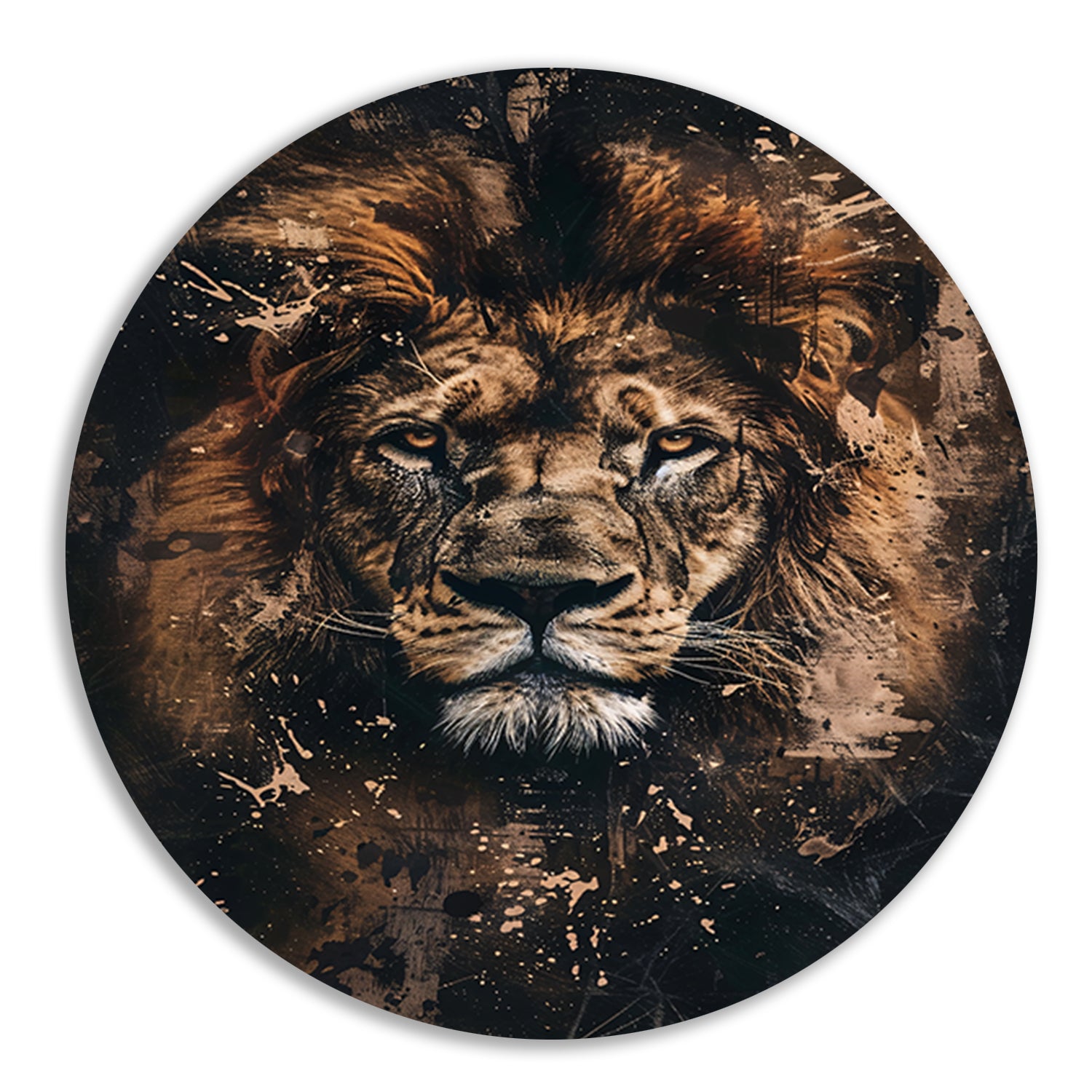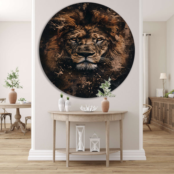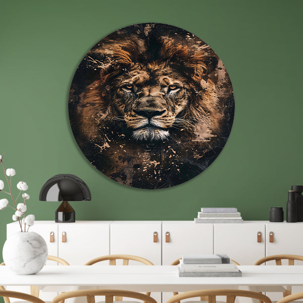 Mysterieus leeuwenportret in rustieke stijl aluminium muurcirkel