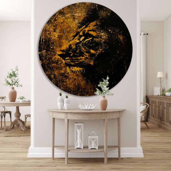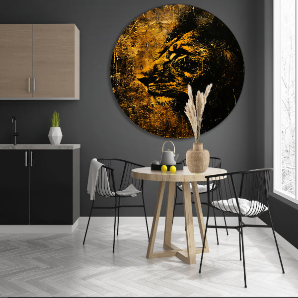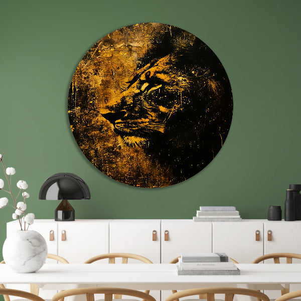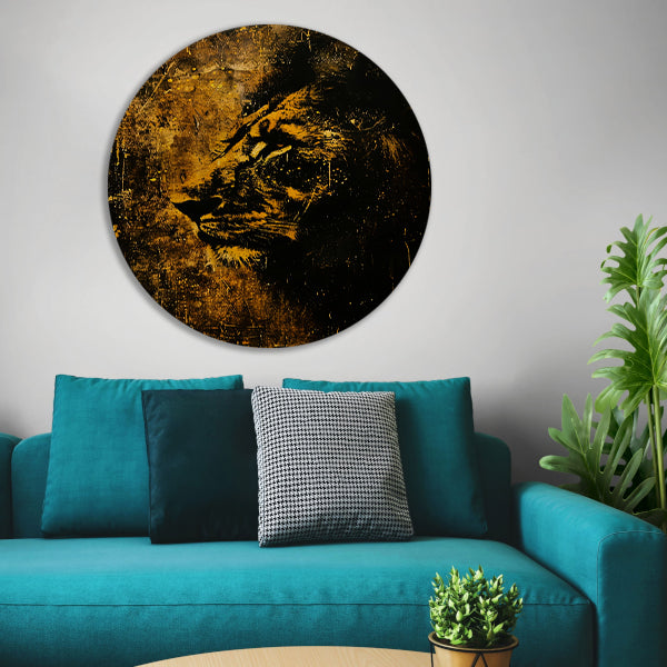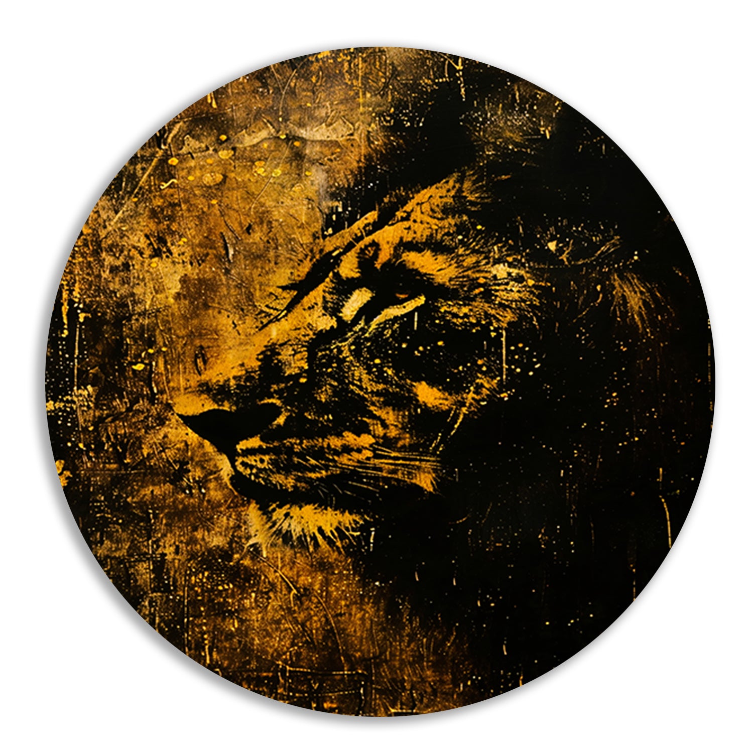 Mysterieus Leeuwenportret in rustieke stijl aluminium muurcirkel