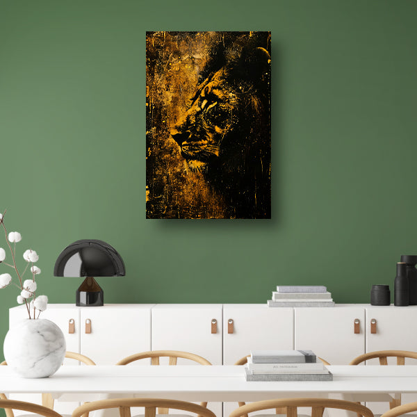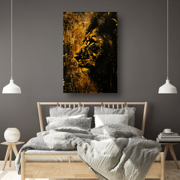 Mysterieus Leeuwenportret in rustieke stijl canvas met baklijst