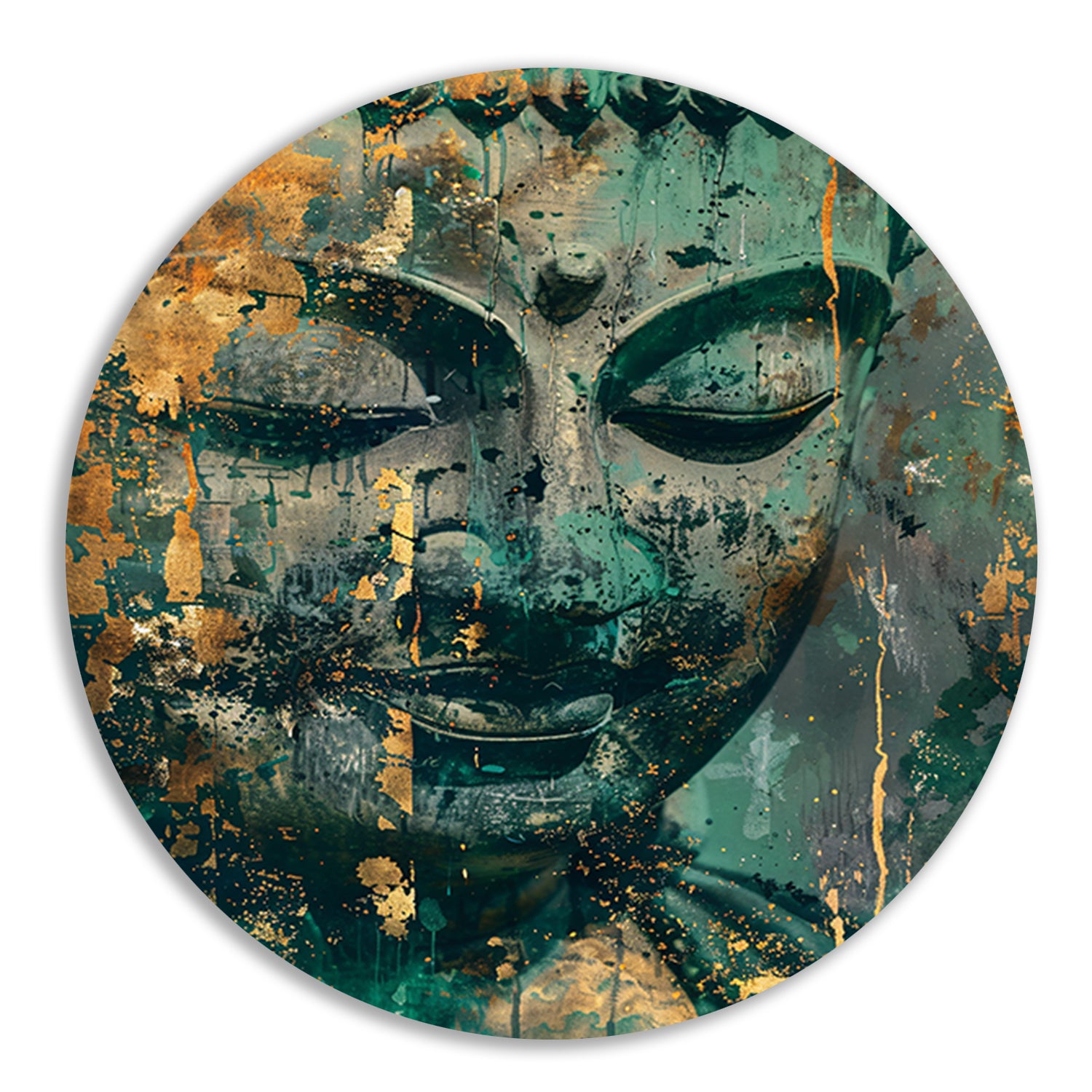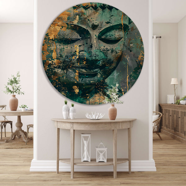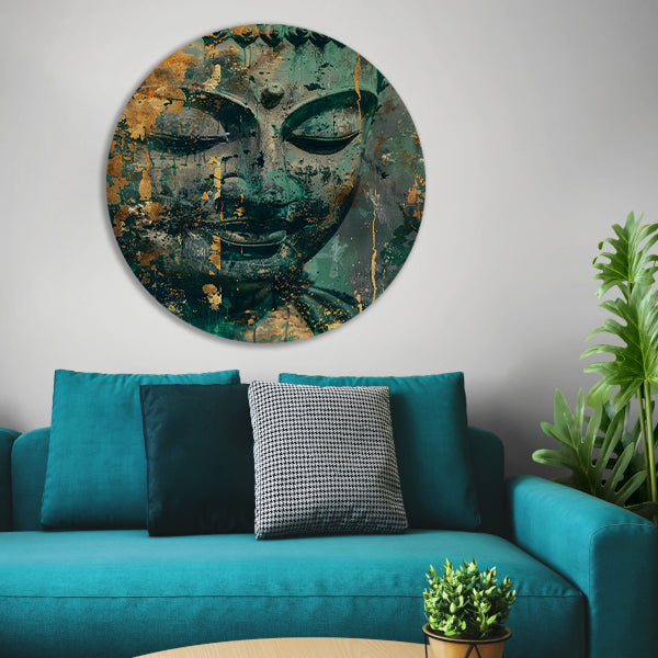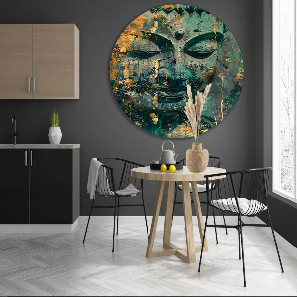 Mysterieuze Boeddha in rustieke kleuren aluminium muurcirkel