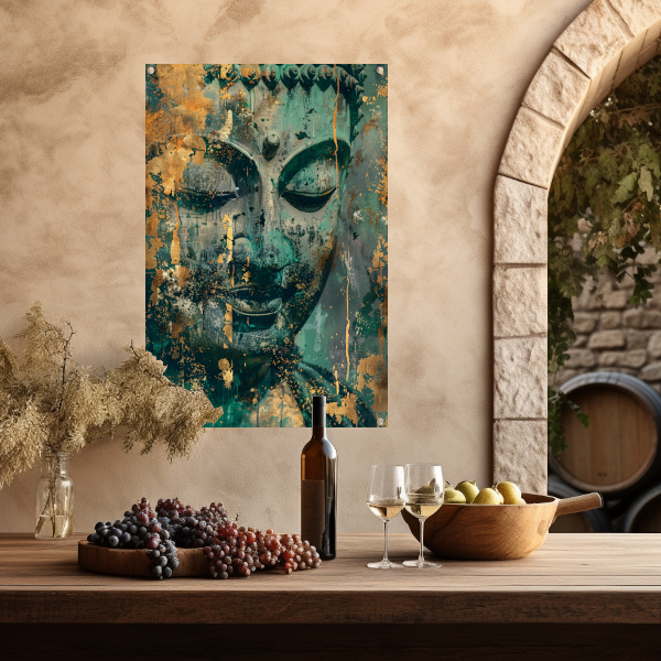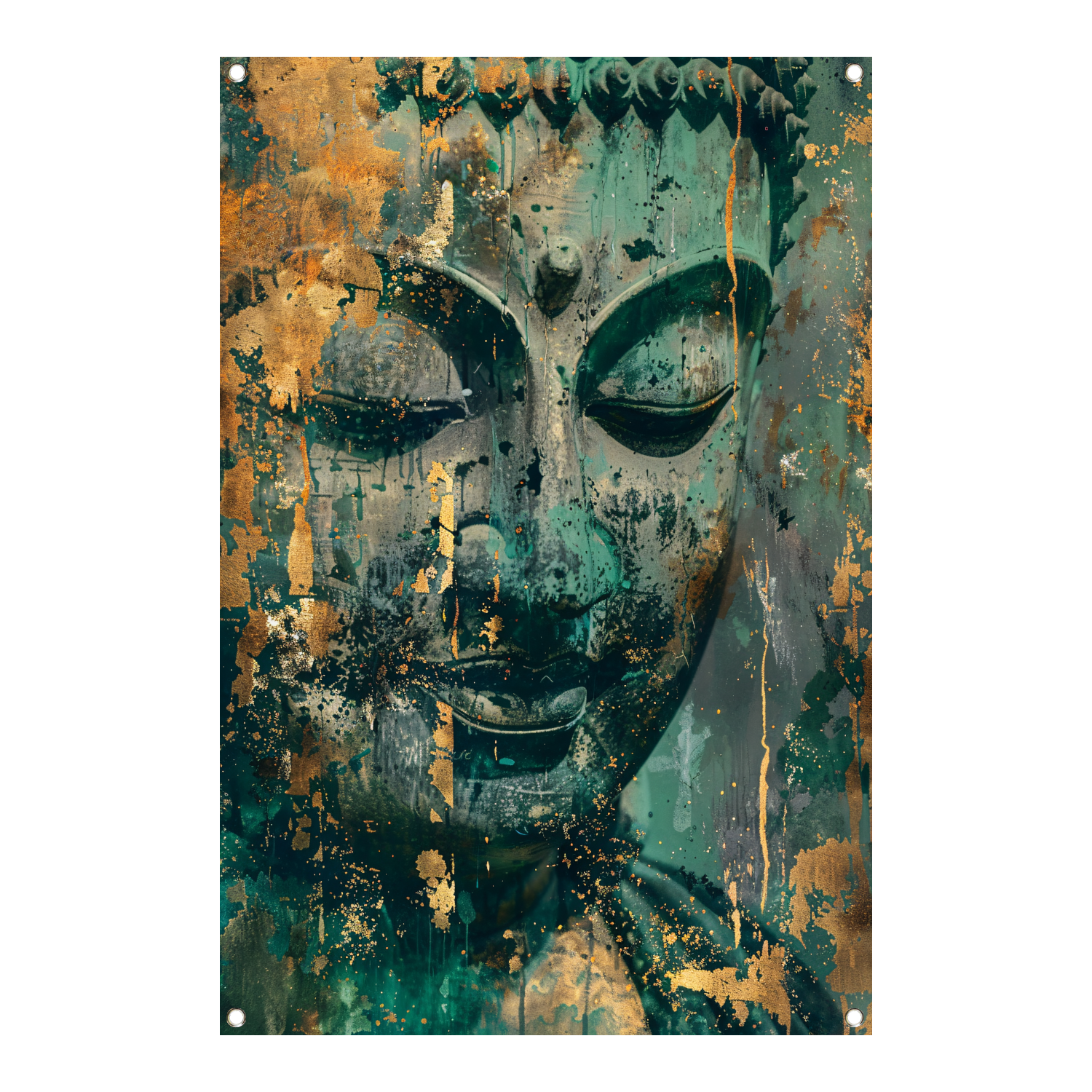 Mysterieuze Boeddha in rustieke kleuren tuinposter