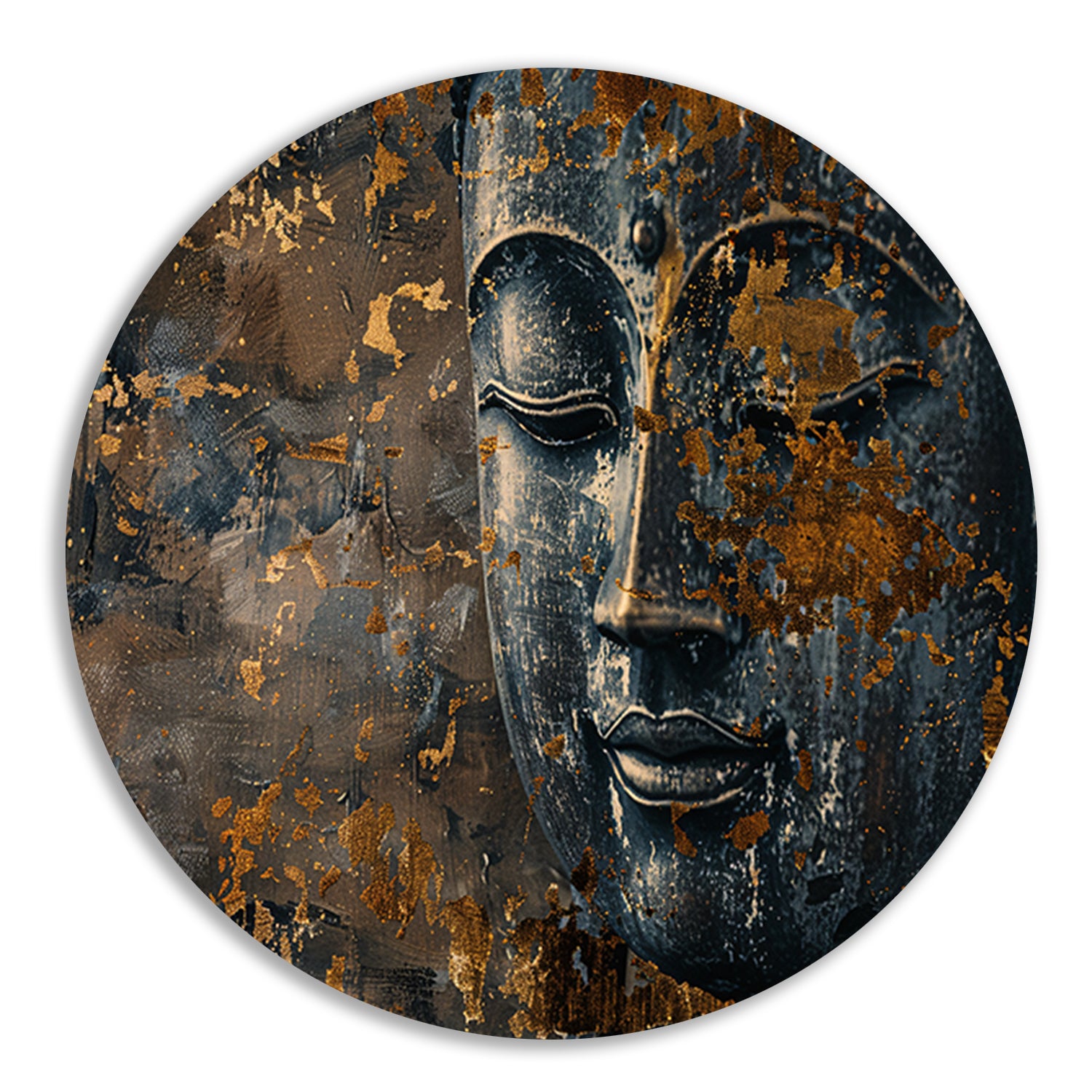 Mysterieuze Boeddha met gouden accenten aluminium muurcirkel