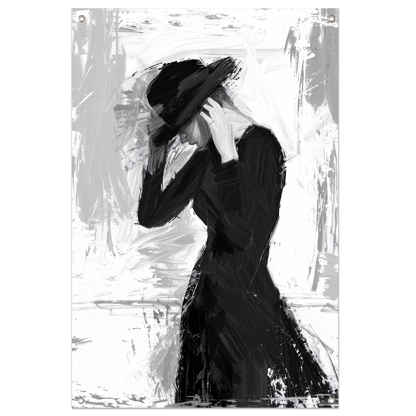 Mysterieuze vrouw in sombere tinten tuinposter