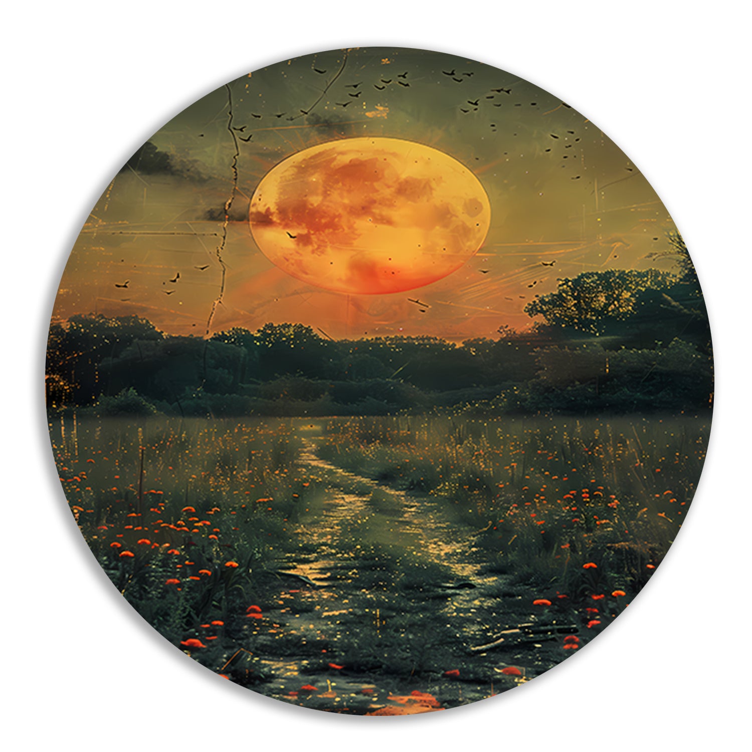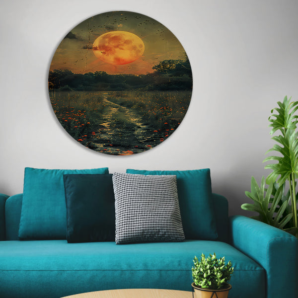 Breng de serene schoonheid van een maanverlicht bloemenveld in huis met deze prachtige muurcirkel. Bestel vandaag nog en geniet van de betoverende sfeer die deze kunstzinnige muurdecoratie met zich meebrengt.