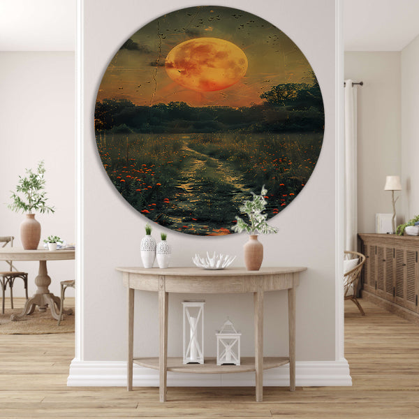 Mystiek Maanlicht Pad Door Bloemenveld forex muurcirkel