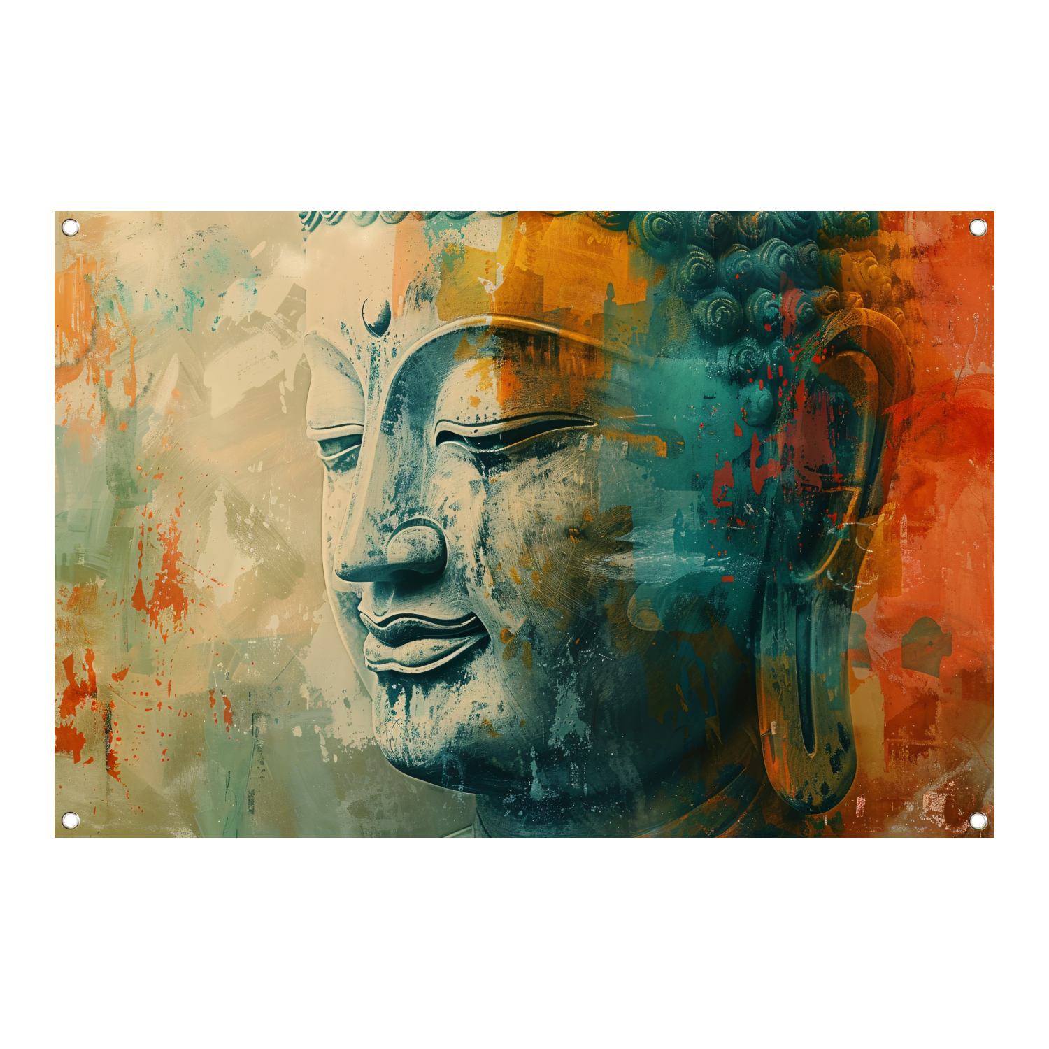 Mystieke abstracte Boeddha in levendige kleuren tuinposter