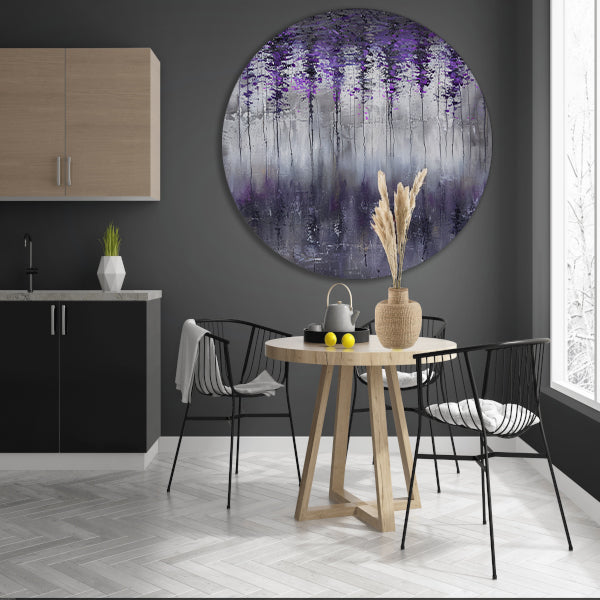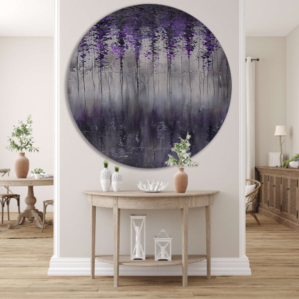 Breng de natuur naar binnen met deze prachtige muurcirkel en geniet dagelijks van de rustgevende uitstraling van de mystieke abstracte bomen in mistige tinten.