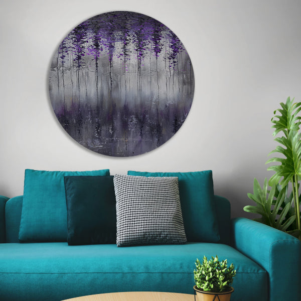 Mystieke abstracte bomen in mistige tinten aluminium muurcirkel