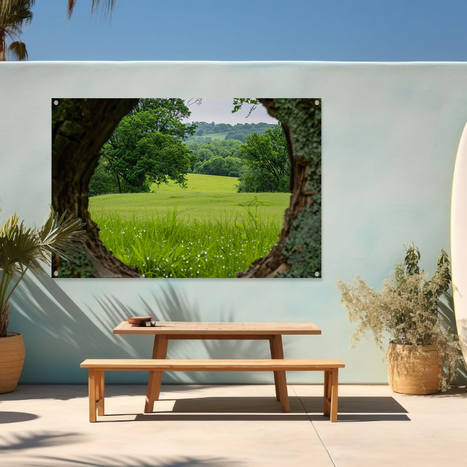 Onze tuinposters zijn UV- en waterbestendig, waardoor ze bestand zijn tegen zon en regen en hun kleuren langdurig mooi blijven. Alle tuinposters van De Muurdecoratie zijn voorzien van ringen in de hoeken, zodat je ze eenvoudig kunt ophangen. Let op: onze tuinposters worden niet met ophangsysteem geleverd.